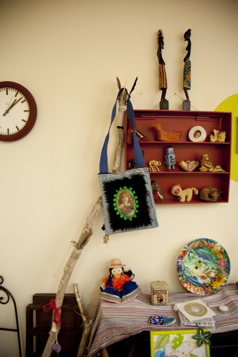 I am like a bird, foraging. Everywhere I go I look around and discover objects, which to me are little gems, I have an eye for the smallest details. At junk markets and jumble sales and also on holidays I often stumble upon beautiful finds that get a place in my studio, like a nicely shaped branch, a stone, but also a funny ethnic figure. I surround myself with these found objects. (Sub)consciously I include the vibe of these little gems in my works of art.